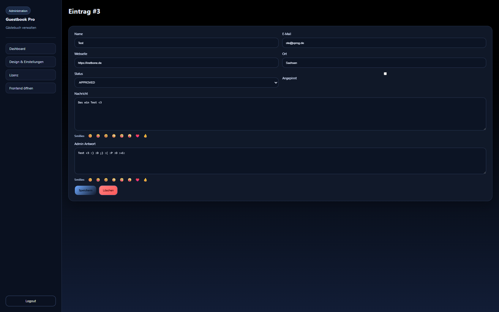 Für ein lebendigeres Gästebuch unterstützt Gästebuch Pro Standard-Smilies sowohl im Frontend als auch im Adminbereich.